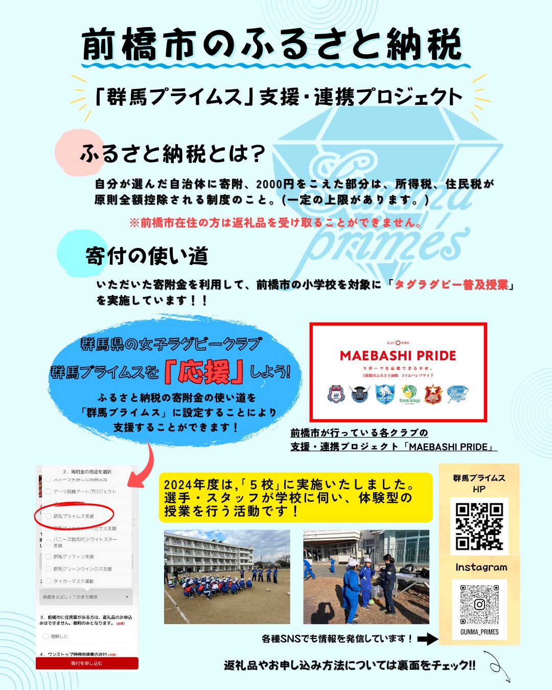 ふるさと納税の寄附金の使い道を「群馬プライムス」に設定することにより、支援することができます!